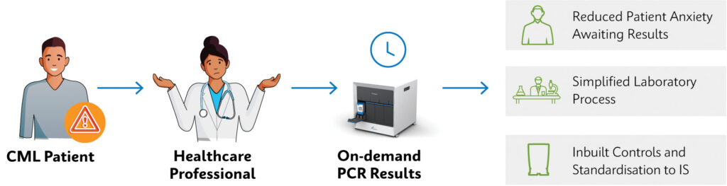 Chronic Myeloid Leukemia (CML) is a type of blood cancer with a good prognosis due to effective treatments.1 Once on appropriate therapy, guidelines recommend all patients require molecular monitoring on a regular basis.2 Sensitive and standardised PCR testing with the GeneXpert® system provides accurate, on-demand, and actionable results for improved patient management. That’s the PCRplus advantage.