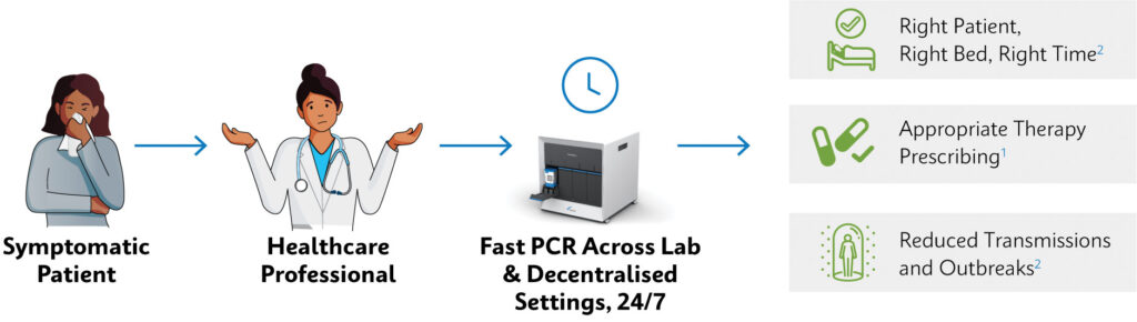 1 Jacquier H, et al. Impact of a 24/7 rapid molecular assay for influenza detection on the prescription of oseltamivir. Open Forum Infect Diseases. 2020 Aug;7(9):ofaa374.