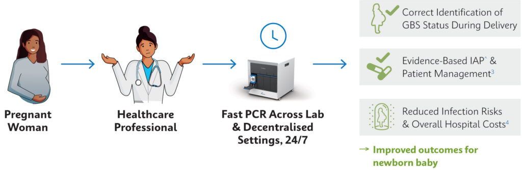 GBS continues to be a leading cause of early-onset neonatal sepsis, prompting the need for earlier and more precise detection. Fast and accurate PCR testing with the GeneXpert® system provides standardised, on-demand, and actionable results for better patient management. That’s the PCRplus advantage.